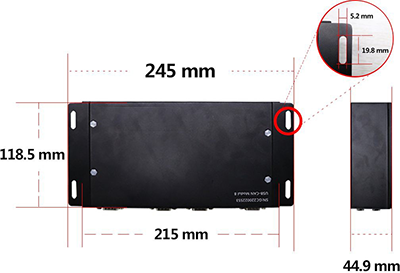 設(shè)備外形尺寸:(長)245mm*(寬)118.5mm*(高)44.9mm,其示意圖如圖所示。