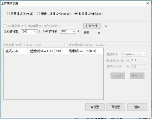 濾波設(shè)置:通過編輯濾波ID的方式,實現(xiàn)多段濾波。