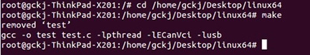 6、再次進(jìn)入USBCAN驅(qū)動文件夾,編譯。輸入:make
