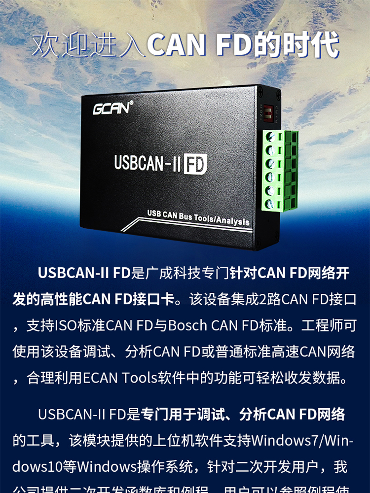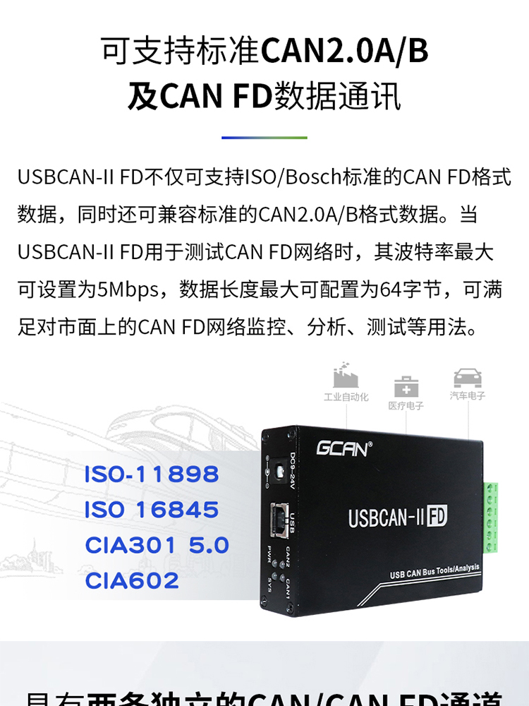 - 沈陽廣成科技USBCAN-II FD是集成2路CANFD接口的高性能型總線通訊接口卡。該型號CAN卡符合USB2.0總線高速規(guī)范,具有兩條獨立的CAN/CAN FD通道,且信號間相互隔離。PC可以通過USB接口快速連接至CAN(FD)-bus網(wǎng)絡(luò),構(gòu)成現(xiàn)場總線實驗室、工業(yè)控制、智能小區(qū)、汽車電子網(wǎng)絡(luò)等CAN(FD)-bus網(wǎng)絡(luò)領(lǐng)域中數(shù)據(jù)處理、數(shù)據(jù)采集的CAN(FD)-bus網(wǎng)絡(luò)控制節(jié)點。