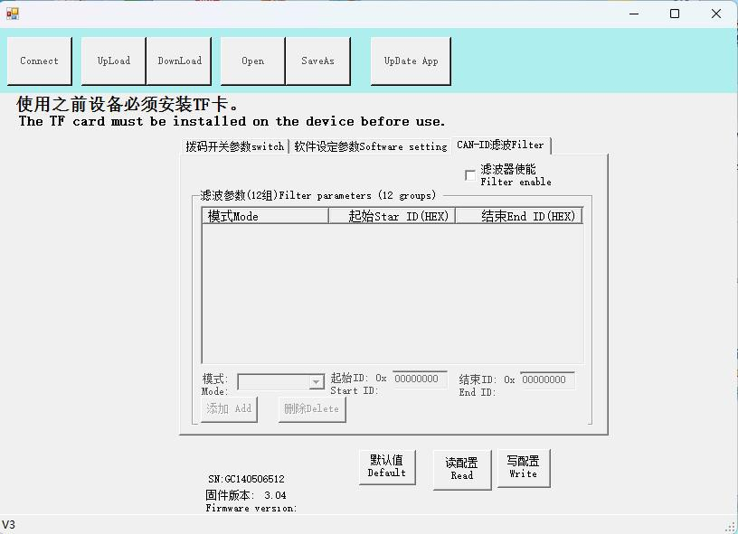 請(qǐng)注意:點(diǎn)擊“默認(rèn)值”會(huì)使所有配置內(nèi)容恢復(fù)為默認(rèn)狀態(tài)。默認(rèn)工作模式為軟件配置無(wú)效,無(wú)濾波。