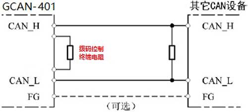 GCAN-401模塊電源、CAN、終端電阻端子接口