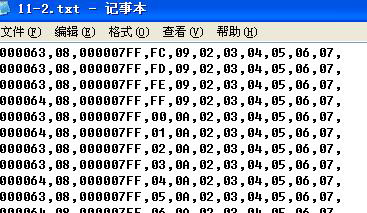 第一列:幀間隔時(shí)間,精度0.1ms(6個(gè)字符)例:0x000064轉(zhuǎn)化10進(jìn)制為100(單位:ms)第二列:幀信息(2個(gè)字符)第三列:幀ID(8個(gè)字符)第四列之后:幀數(shù)據(jù)
