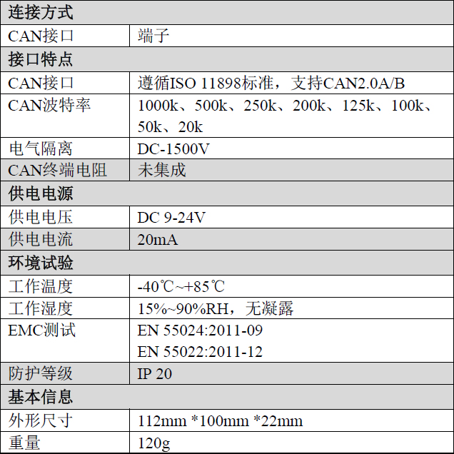 (6)CAN總線接口采用電氣隔離,隔離模塊絕緣電壓:DC 1500V;