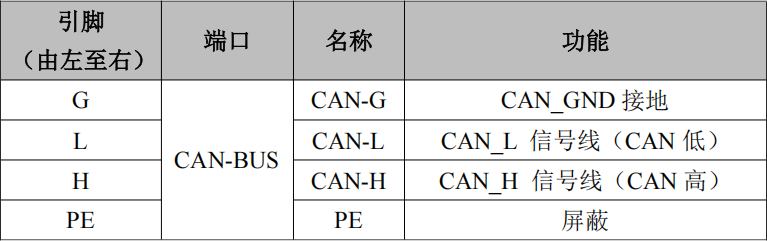 GCAN-204模塊CAN總線接口由1個4 PIN接線端子引出,可以用于連接1個CAN-bus網(wǎng)絡(luò)或者CAN總線接口的設(shè)備,其接口定義如表所示。