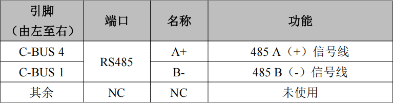 GCAN-204模塊RS485接口由1個4 PIN接線端子引出,用于連接Modbus RTU網(wǎng)絡(luò)或者Modbus RTU主站設(shè)備,其接口定義如表所示。