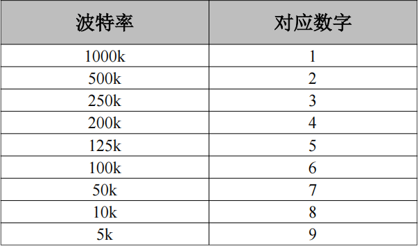 “Can Baudrate”——設(shè)置CAN端波特率;詳細設(shè)置如表所示