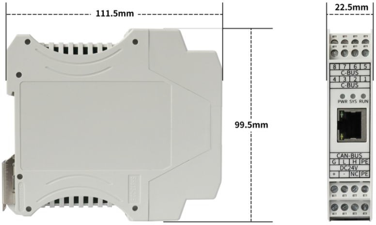 設(shè)備外形尺寸:(長(zhǎng),含接線端子)111.5mm*(寬)99.5mm*(高)22.5mm,其示意圖如圖所示。