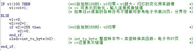 完成變量定義后便可在下方的編程界面開始編程了,下面為用ST編寫的簡(jiǎn)單例程語句: