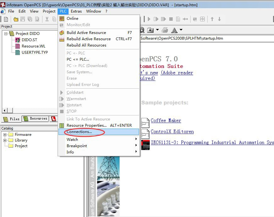 1、點(diǎn)擊PLC->Connections...(連接...)。