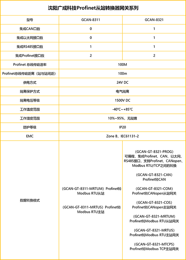 沈陽(yáng)廣成科技GCAN-8321型Profinet總線網(wǎng)關(guān)的設(shè)備參數(shù)包括: