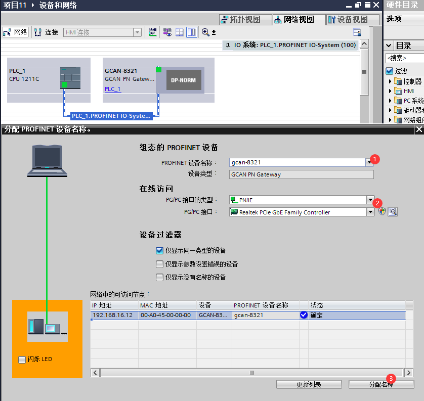 GCAN-GT-8321 Profinet網(wǎng)關(guān)與Profinet控制器連接
