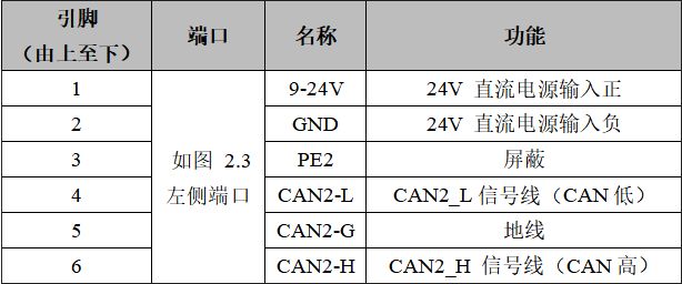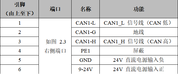 GCAN-216模塊右側(cè)接口其接口定義如表所示