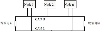 為了增強(qiáng)CAN通訊的可靠性,消除CAN總線終端信號反射干擾,CAN總線網(wǎng)絡(luò)最遠(yuǎn)的兩個(gè)端點(diǎn)通常要加入終端匹配電阻,如圖所示。終端匹配電阻的值由傳輸電纜的特性阻抗所決定。例如雙絞線的特性阻抗為120Ω,則總線上的兩個(gè)端點(diǎn)也應(yīng)集成120Ω終端電阻。