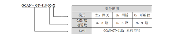 廣成科技GCAN-GT-418系列產(chǎn)品是集成3/6/9路CAN/CANFD通道、1路以太網(wǎng)接口的高性能型CAN/CANFD產(chǎn)品。采用GCAN-GT-418系列產(chǎn)品,用戶可以輕松完成CAN/CANFD網(wǎng)絡(luò)和以太網(wǎng)網(wǎng)絡(luò)的互連互通,進一步拓展CAN/CANFD網(wǎng)絡(luò)的范圍。GCAN-GT-418的系列產(chǎn)品CAN接口、電源接口均集成了電氣隔離保護模塊,使其避免由于瞬間過流/過壓而對設(shè)備造成損壞,增強系統(tǒng)在惡劣環(huán)境中使用的可靠性。二、產(chǎn)品選型