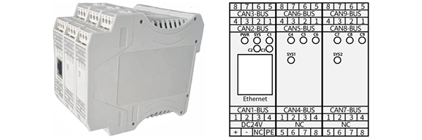 (1)電源采用24V DC(-15%/+20%);(2)電流200mA(24VDC典型值);(3)電源隔離1500 VDC、CAN隔離3000VDC;(4)3/6/9路CAN/CANFD復(fù)用接口;(5)浪涌抗擾度等級:±1KV;(6)網(wǎng)關(guān)和網(wǎng)橋型號配置軟件:自主研發(fā)的GCAN_PLC_Solution軟件;(7)網(wǎng)橋模式,每個從節(jié)點可以最多帶32個設(shè)備;(8)可編程型號編程軟件:CODESYS軟件(符合IEC 61131-3標(biāo)準(zhǔn));(9)可編程型號支持CANopen、Modbus、J1939等協(xié)議、支持CAN、CANFD自由口;(10)標(biāo)準(zhǔn)DIN導(dǎo)軌安裝方式,專為工業(yè)設(shè)計。(11)工作溫度范圍:-40℃~+85℃;(12)工作相對濕度范圍:10%~95%,無凝露;(13)防護等級:IP20。