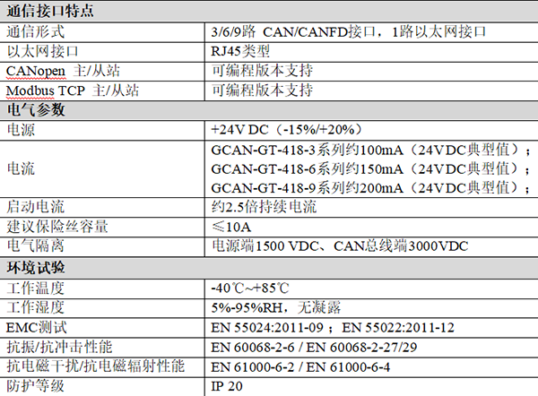 廣成科技GCAN-GT-418系列產(chǎn)品的性能特點包括: