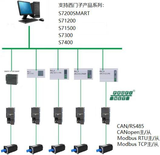 西門子PLC的Profinet接口連接8321S的Profinet接口,8321S的CAN接口連接CANopen從站的CAN總線接口。