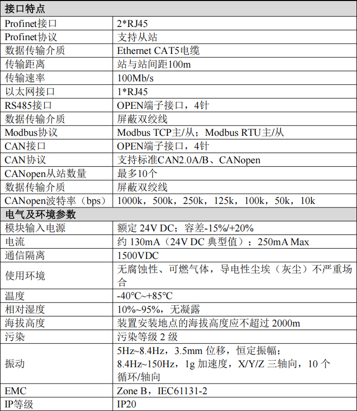 - (1)2個Profinet總線接口(RJ45),支持從站級聯(lián);