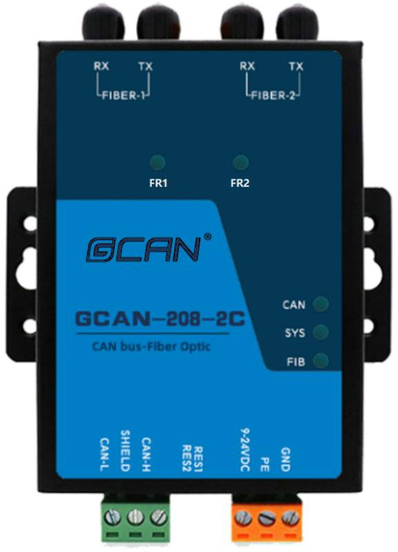 GCAN-208-2C模塊集成一路9-36V DC電源接口、1路標(biāo)準(zhǔn)CAN總線接口及2路標(biāo)準(zhǔn)光纖接口(單模、多模,SC、ST、FC可選)。