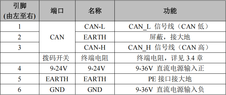 (3)CAN總線自帶120Ω終端電阻,可通過(guò)撥碼開(kāi)關(guān)選擇;