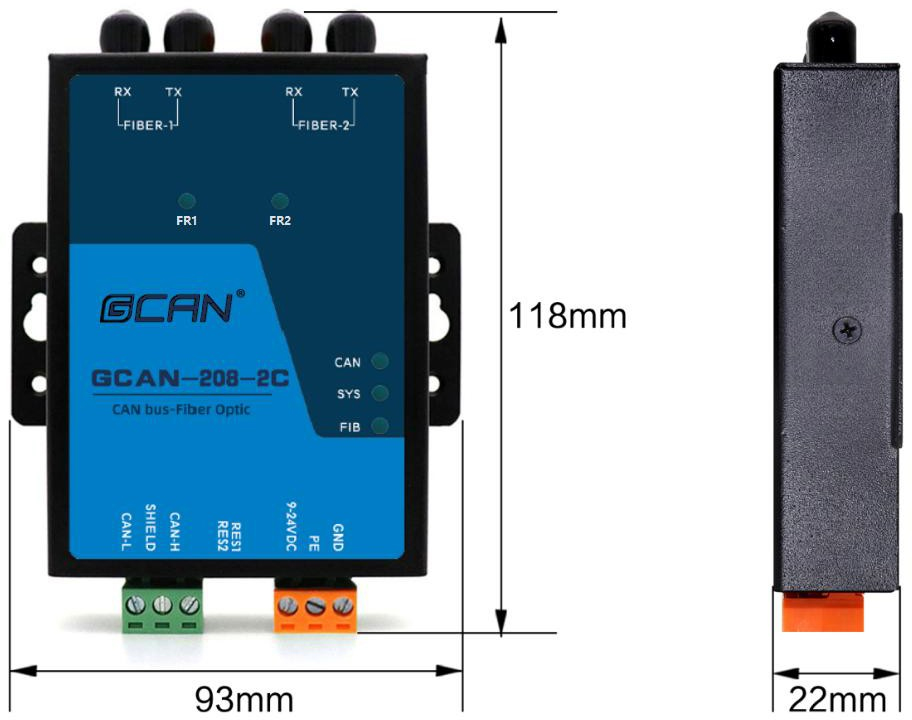 圖2.1 GCAN-208-2C外形尺寸