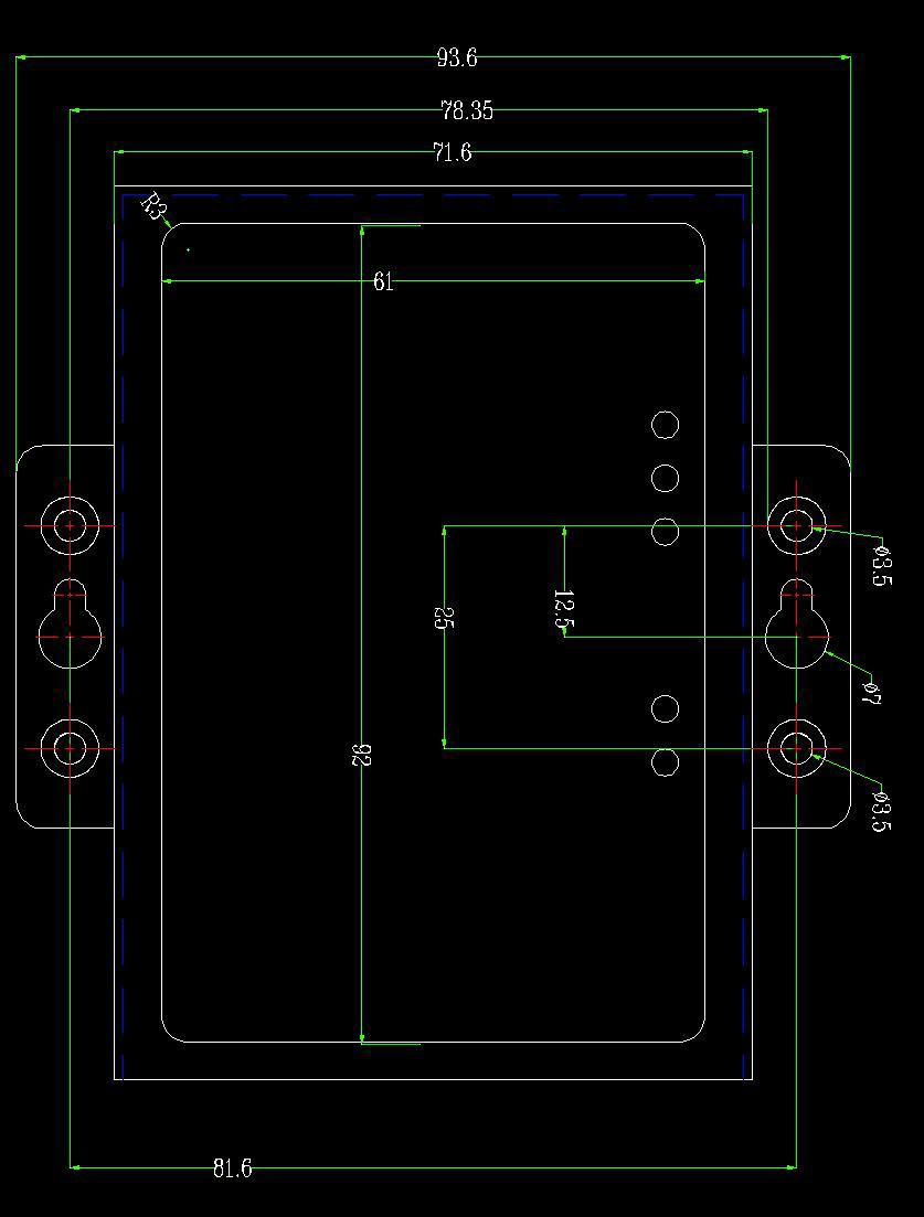 設(shè)備外形尺寸:(長(zhǎng),含接線端子)118mm*(寬)93mm*(高)22mm,其示意圖如圖2.1所示。