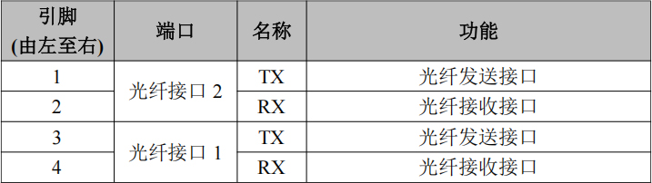 表2.5 GCAN-208-2C光纖接口定義