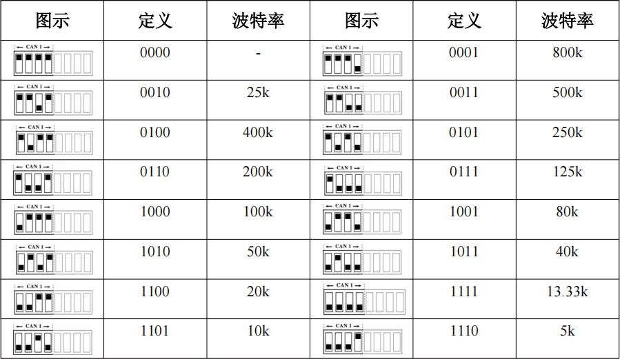 3.1.1通過(guò)撥碼開(kāi)關(guān)配置CAN總線波特率