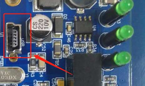 當(dāng)需知道當(dāng)前設(shè)備使用的波特率的值時(shí),先打開(kāi)設(shè)備外殼(擰開(kāi)兩側(cè)黑色螺絲即可)然后用USB線將設(shè)備的USB口和電腦連接上,USB口為USB-MINI口,如圖3.3所示。