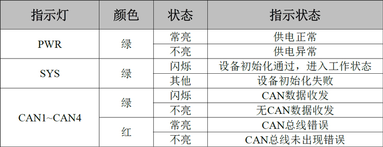 2.3.2 GCAN-GT-246指示燈狀態(tài)