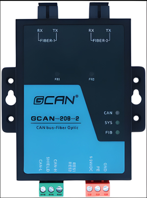 沈陽廣成科技有限公司GCAN-208-2-F系列模塊是集成2路標(biāo)準(zhǔn)光纖接口(單模、多模,SC、ST、FC可選)、1路標(biāo)準(zhǔn)CAN總線接口的工業(yè)級(jí)CAN總線轉(zhuǎn)光纖轉(zhuǎn)換器。