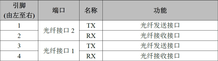 GCAN-208-2-F模塊光纖接口位置、接口定義如圖2.6、表2.5所示。