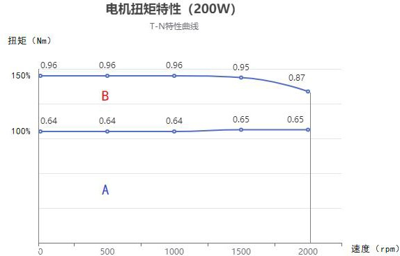 200W電機(jī)轉(zhuǎn)矩-轉(zhuǎn)速特性曲線: