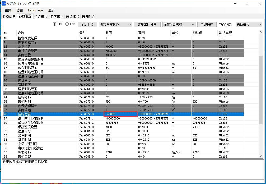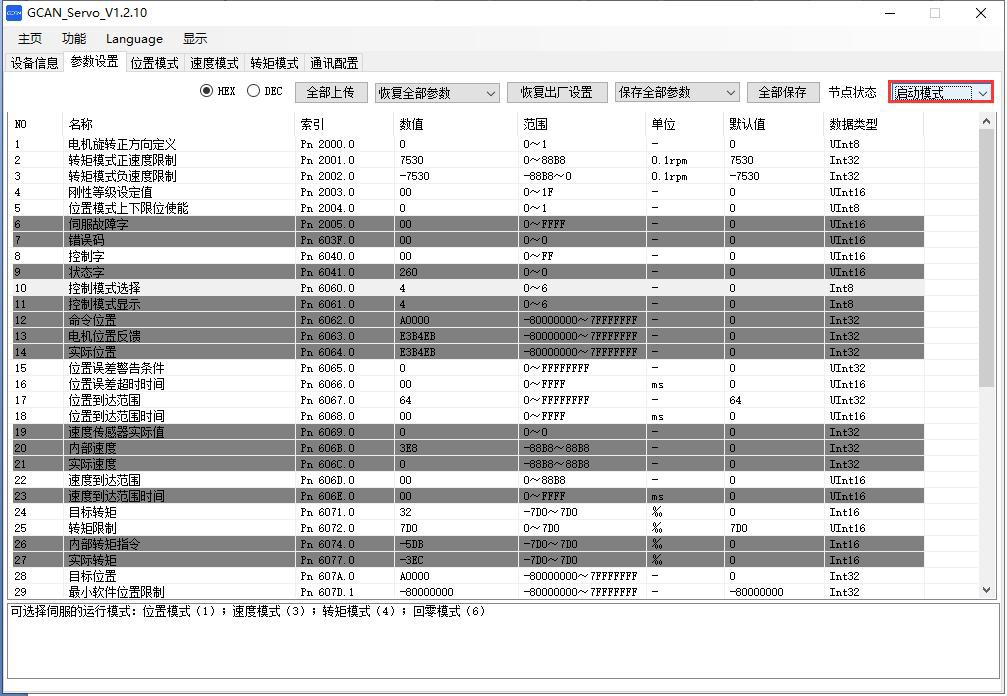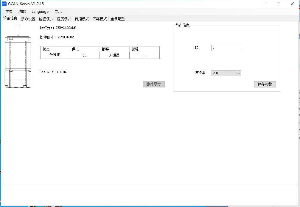 ● 下方設(shè)備信息欄:顯示掃描出的當(dāng)前總線中在線的伺服電機(jī)信息。