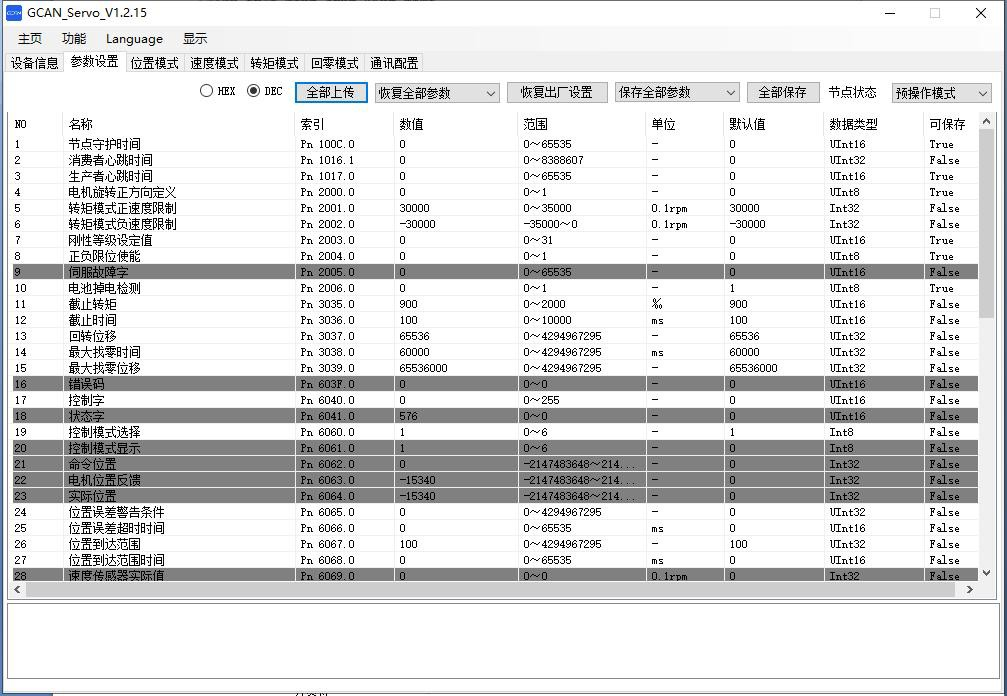 ● DevType:顯示當(dāng)前在線伺服電機(jī)類型。