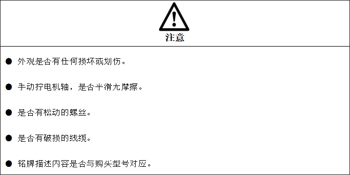 請按照下表逐一檢查,以防止操作不當(dāng)造成產(chǎn)品及人員的損傷。