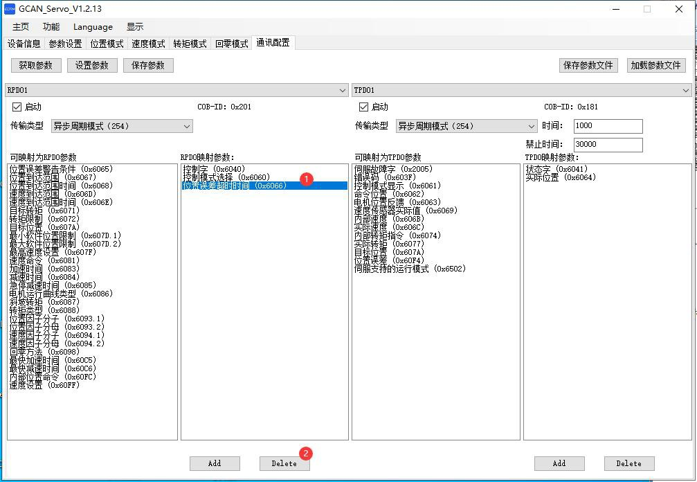 索引0x3036輸入1000,單位ms,即截止時(shí)間為1000ms。