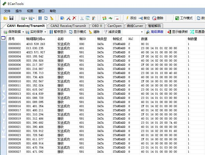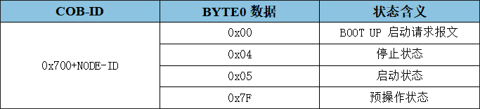 報(bào)文:ID:0x000數(shù)據(jù):01 01,設(shè)置CANopen進(jìn)入啟動(dòng)狀態(tài)。
