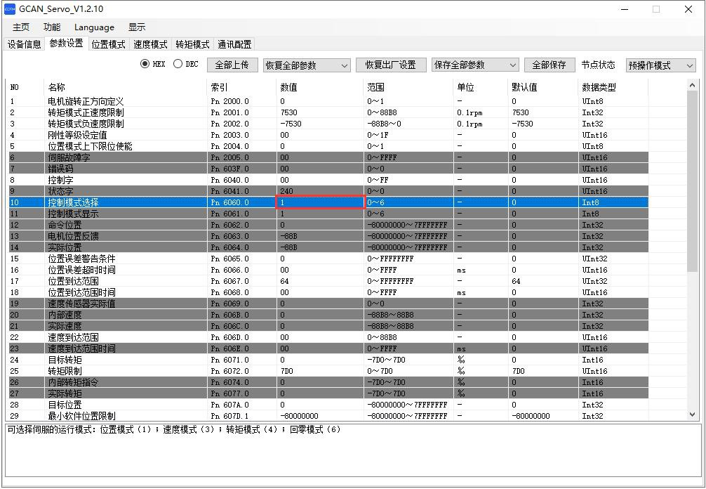 1、設(shè)置控制模式為速度模式:索引Pn 6060.0輸入03。