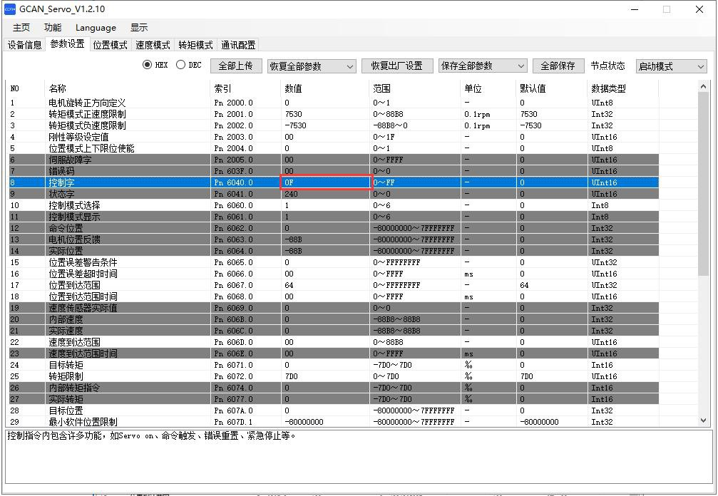 報(bào)文:ID:0x601數(shù)據(jù):2F 60 60 00 04 00 00 00,設(shè)置0x6060為4,設(shè)置運(yùn)行模式為轉(zhuǎn)矩模式。