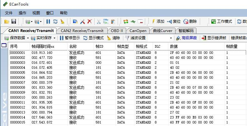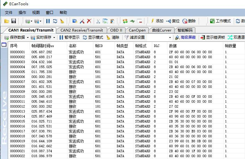報(bào)文:ID:0x601數(shù)據(jù):2B 40 60 00 1F 00 00 00。
