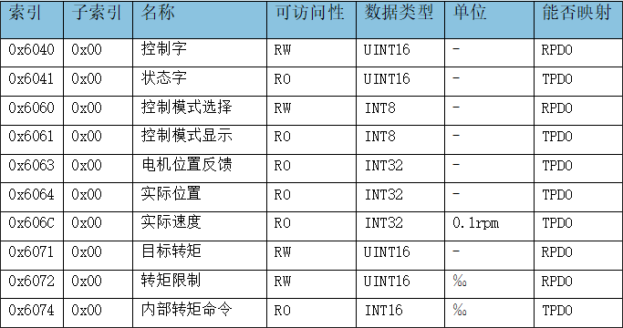 報(bào)文:ID:0x601數(shù)據(jù):2B 71 60 00 32 00 00 00,單位‰Tn。即以5%的轉(zhuǎn)矩運(yùn)行。