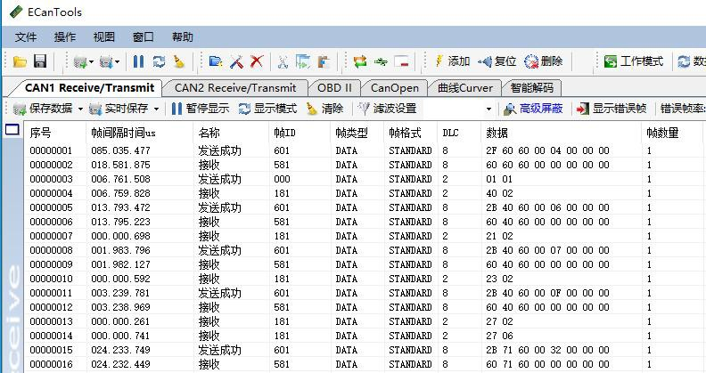 報(bào)文:ID:0x601數(shù)據(jù):2B 40 60 00 10 00 00 00。
