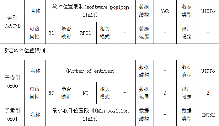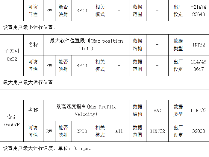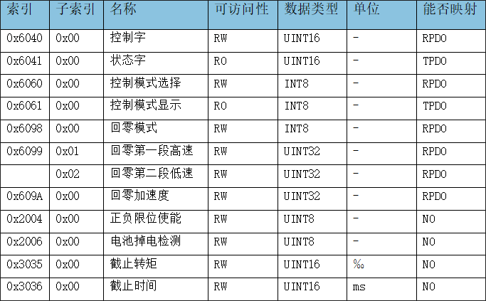 如果需要檢測正、負(fù)限位信號,需將索引0x2004設(shè)為1,即使能正負(fù)限位信號檢測,否則正、負(fù)限位信號無效。