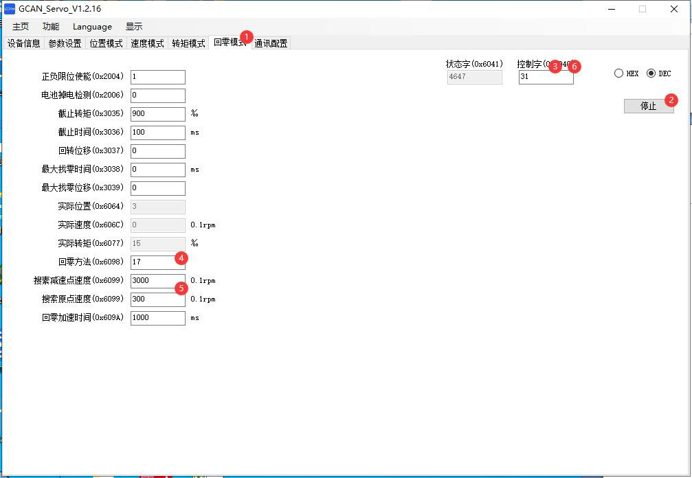 5、設(shè)置截至轉(zhuǎn)矩、截止時(shí)間、回零速度