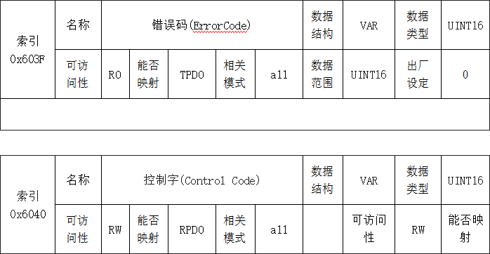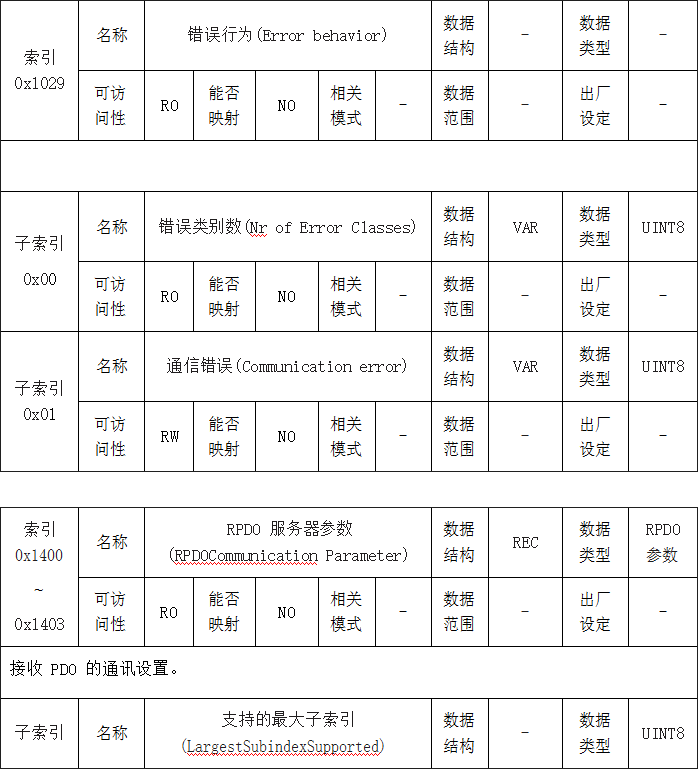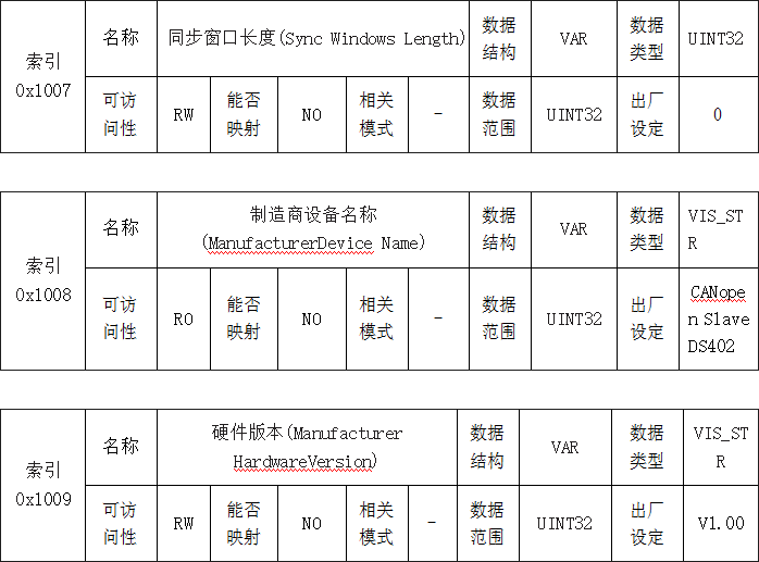 (1)對象字典0x1XXX通訊對象詳細(xì)說明