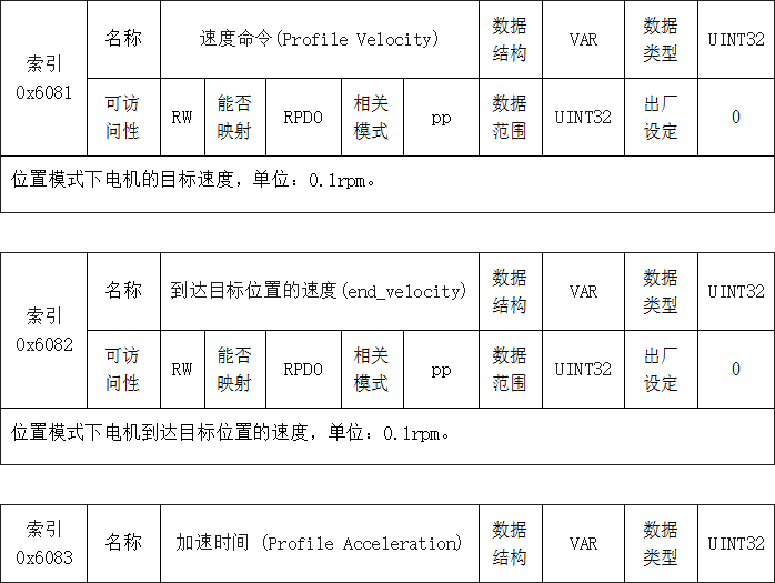 報(bào)文:ID:0x601數(shù)據(jù):2F 60 60 00 03 00 00 00,設(shè)置0x6060為3,設(shè)置運(yùn)行模式為速度模式。