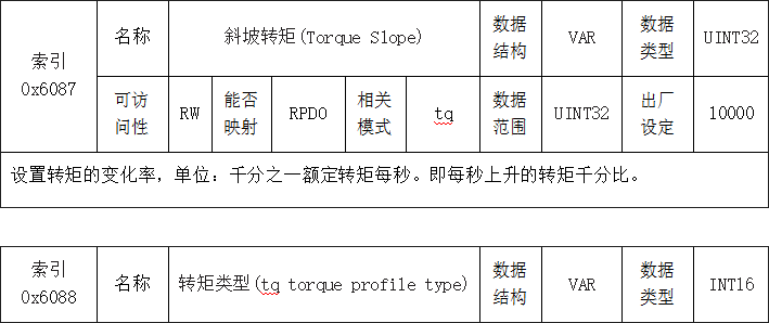 在轉(zhuǎn)矩模式下,上位機(jī)首先指定轉(zhuǎn)矩命令,然后驅(qū)動(dòng)器的運(yùn)動(dòng)命令產(chǎn)生器根據(jù)這些條件規(guī)劃出轉(zhuǎn)矩斜率。