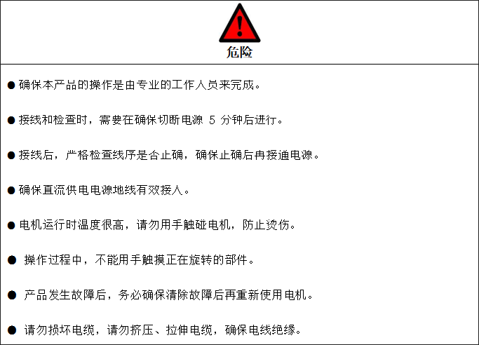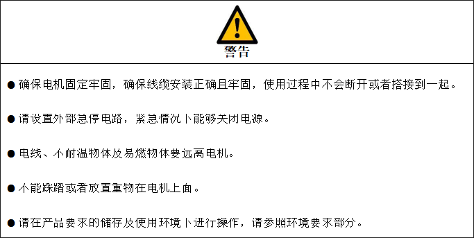 建議電機(jī)先進(jìn)行空載操作,試轉(zhuǎn)沒問題后,再加入負(fù)載進(jìn)行操作,若試轉(zhuǎn)過程中,電機(jī)噪音過大,抖動(dòng)過大,或者有任何報(bào)警情況,請(qǐng)與廠家聯(lián)系。